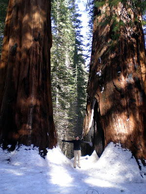 We drove from Las Vegas to Yosemite National park in California. It was a nice change from all the cities we had been in. We had our own house in a valley overlooking a meadow covered in snow. The picture below is of El Capitan, one of the 2 high peaks in Yosemite, the other is Half Dome, which are both famous for rockclimbing. The views and surroundings were unlike anything we had seen before. We saw deer, coyotes and a bob cat, along with many birds. We didn't see a bear but saw footprints near the garbage dump bin.